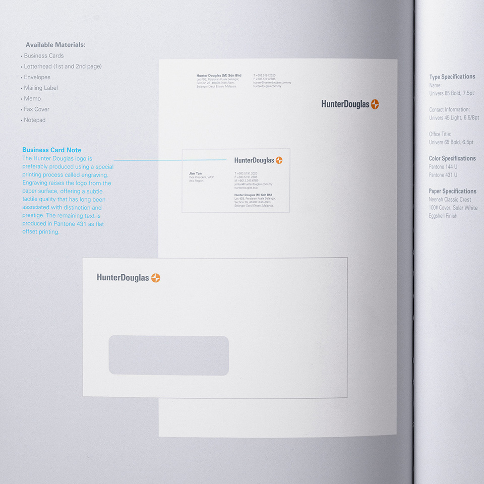 After Chermayeff & Geismar & Haviv had rebranded Hunter Douglas, the brand faced difficulties adapting to the Asian market because of differences in product line-ups, go-to-market strategies, languages, collateral formats and so on. We studied and dissected the brand guide from the US, reworked the components and expanded on it based on the requirements of the Southeast Asian markets. Because Malaysia is the regional HQ of the brand, our version of the brand guide was then distributed to all Hunter Douglas’ offices in SEA.