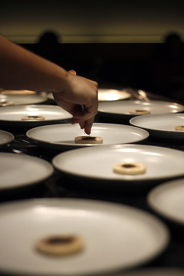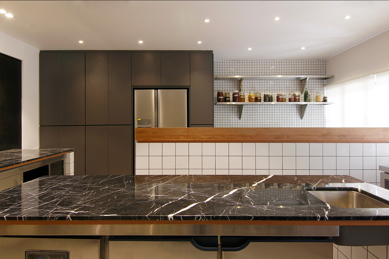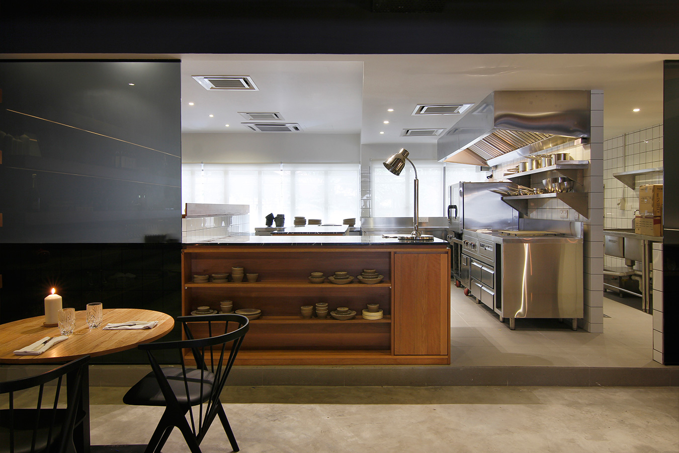We knew the requirements from one event to another would differ in terms of styling and headcount, so we implemented a modular interior for the space. The approach allowed the lighting and furniture to be repositioned with ease. We modified the hanging lights to become plug-and-play fixtures, thus creating a flushed, sleek aesthetic against the dark, open ceilings. We also created an open kitchen to allow guests to be part of the food preparation and elevate their dining experience.