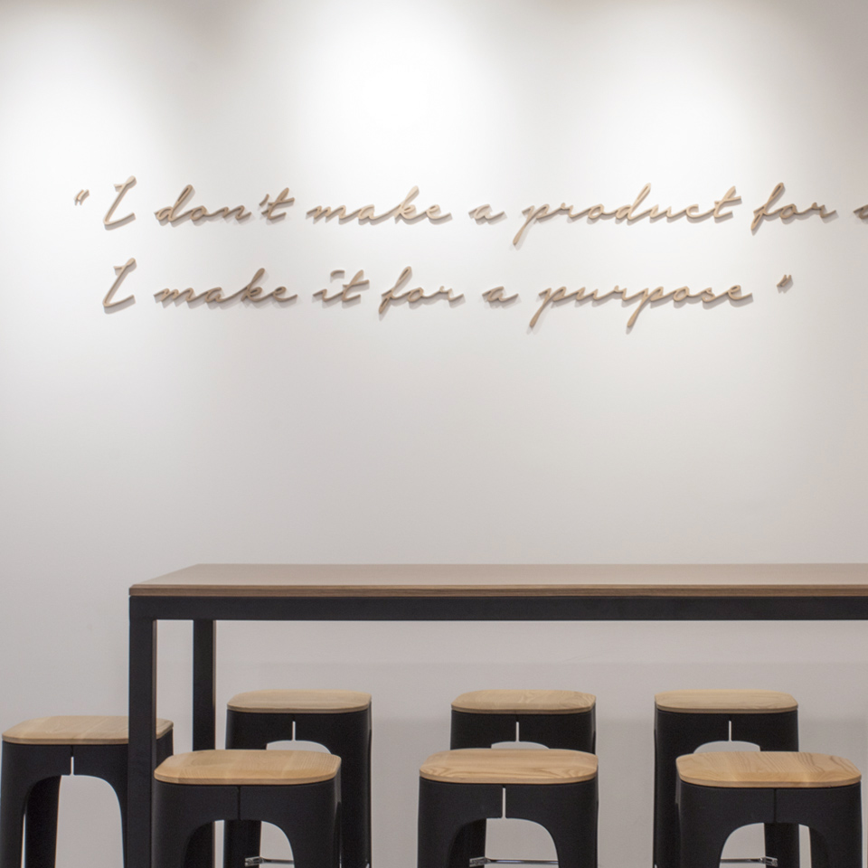 Lastly, on the mezzanine floor, we created an interactive brand experience, where new members could walk through the history and milestones of the brand, and learn more about the products with the help of miniature figurines and motion graphics. We also included a full product line-up for visitors to experience and test.